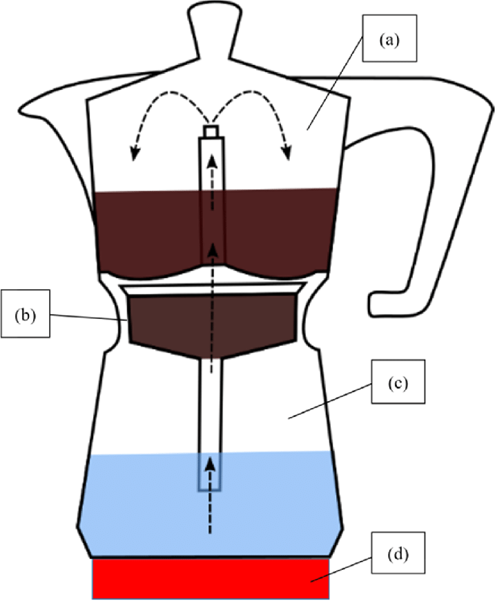 Before the modern high pressure espresso machine, there was still a way to make a higher pressure more caffeinated coffee than drip. It was called the Moka pot. To use it, you would fill the bottom with water, a cup with coffee and screw it together. Placed upon a source of heat, it would force the water through the coffee under steam pressure, when it was done it would make a noise and that sounds like the word moka.
